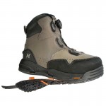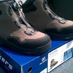 One of the finest, most ergonomic features with these boots is the BOA lace system. When Brian helped me make this order, I had no idea what this lacing system was all about nor how it functioned. I was skeptical of it. This unique lacing system features a tightening knob that can be adjusted (pushed in to tighten and pulled out to loosen) with one hand. This is a very quick and easy lacing system….. no more fighting with your boots for them to slip over the waders. This system removes pressure points and allows for a super firm fit with no discomfort. This firm fit translates into support and increased wading ability and mobility. Additionally, Korkers also utilizes “True Fit” sizing, that allows you to order the same boot size as your street shoe size. Sizing your feet and waders has never been easier.