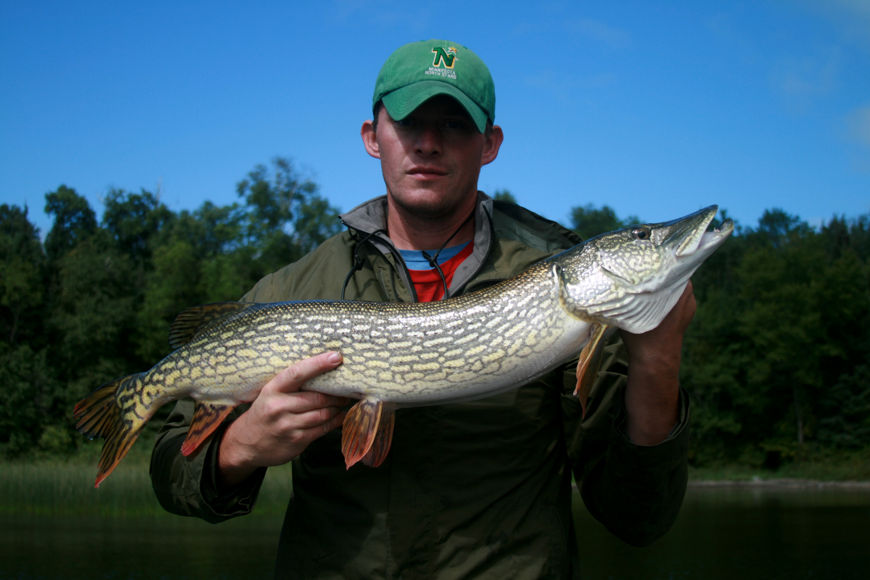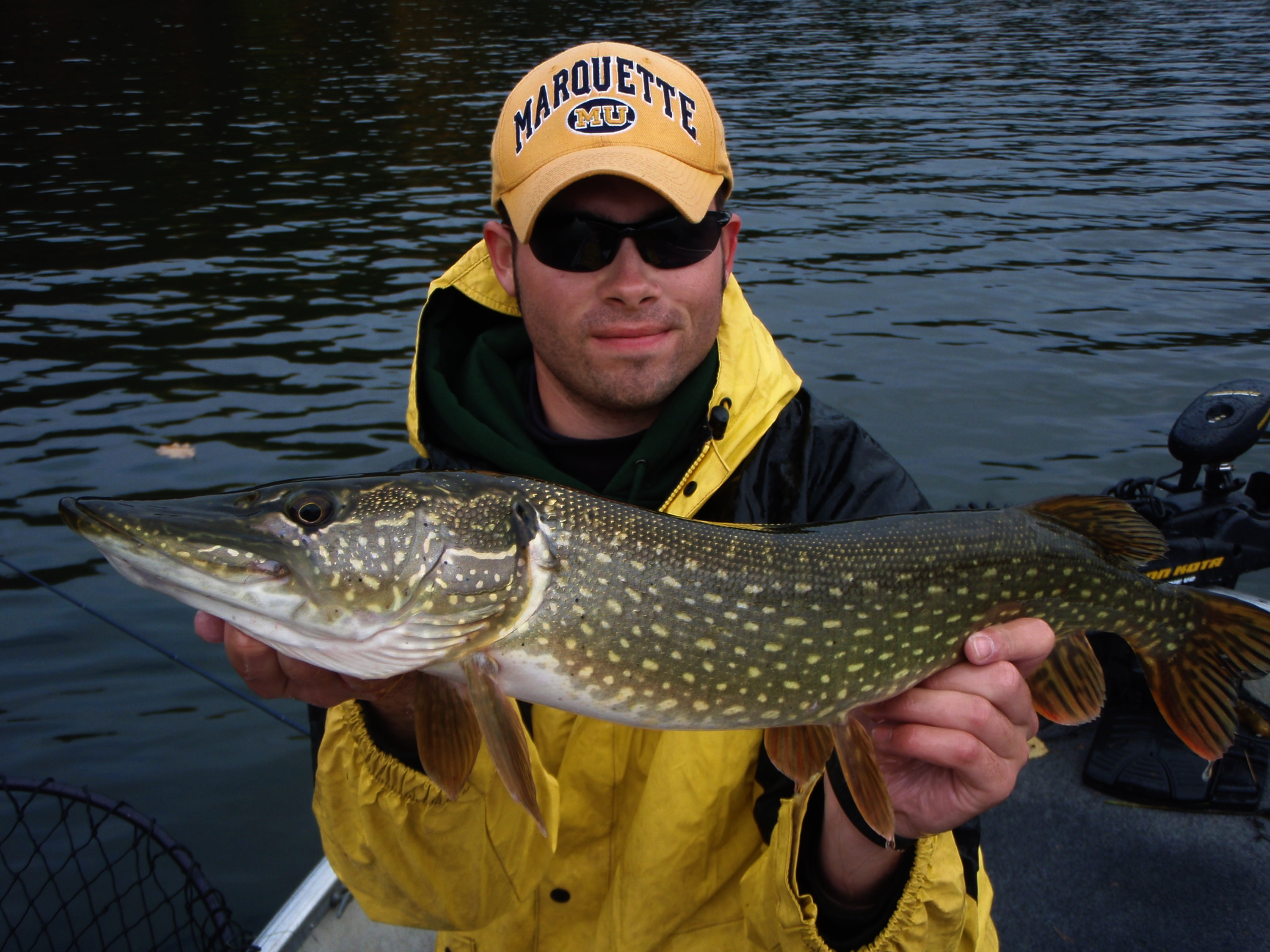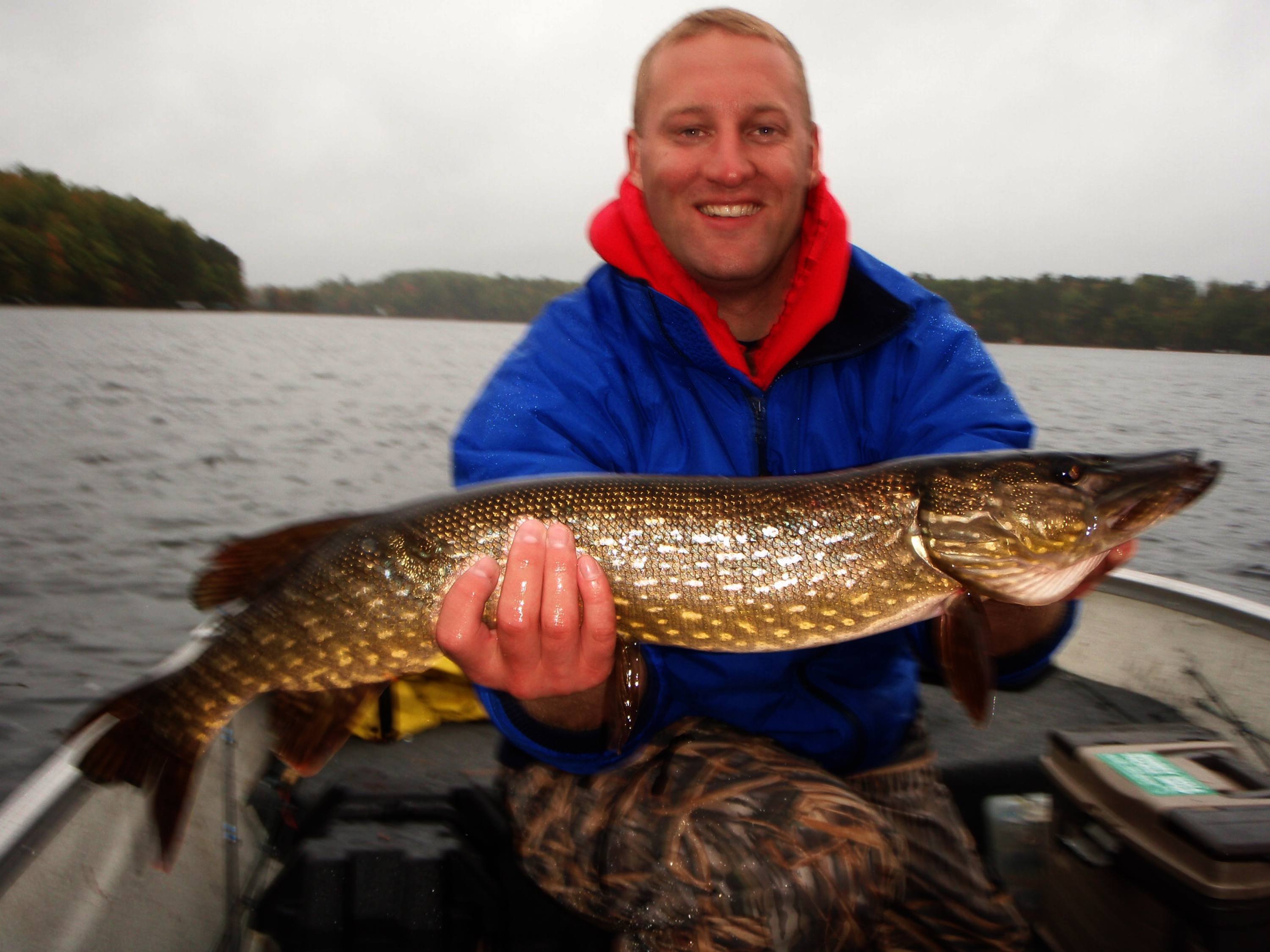 EARLY FALL – Meanwhile, early fall is prime time for amazing pike activity levels too. Depending on your geographic location, late September through mid October can be just as good, if not better for fast and furious action. There is something to be said about layering up and withstanding the elements on the coldest, most miserable days possible. I’ve had my best ever pike fishing on the cloudiest, windiest, and rainiest autumn days in Northern Wisconsin. At this time of the year, fishing isn’t for everyone or the ill-prepared. But the colder the day, the better the fishing will be. The waters of Northern Wisconsin aren’t managed for pike, but some big fish do exist if you know where to look on the lakes still containing adequate pike fisheries that don’t compete with muskies. Typically, one can expect to catch a load of aggressive 30 inchers and an occasional trophy during these miserable angling days by focusing on weeds and their deeper edges.