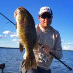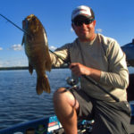 Juvenile perch migrations into vegetation don’t begin until water temps drop back to below 70. As the baitfish schools infiltrate the vegetation, smallmouths will move on and off these locations and follow suit. In recent years, the perch pattern is an overlooked strategy, and has been one of the most consistent big bass producers for me throughout late summer into mid October. When the perch schools are in weeds, it’s my second favorite way to tackle smallmouths in late summer and early fall – the first being power crankbaiting.